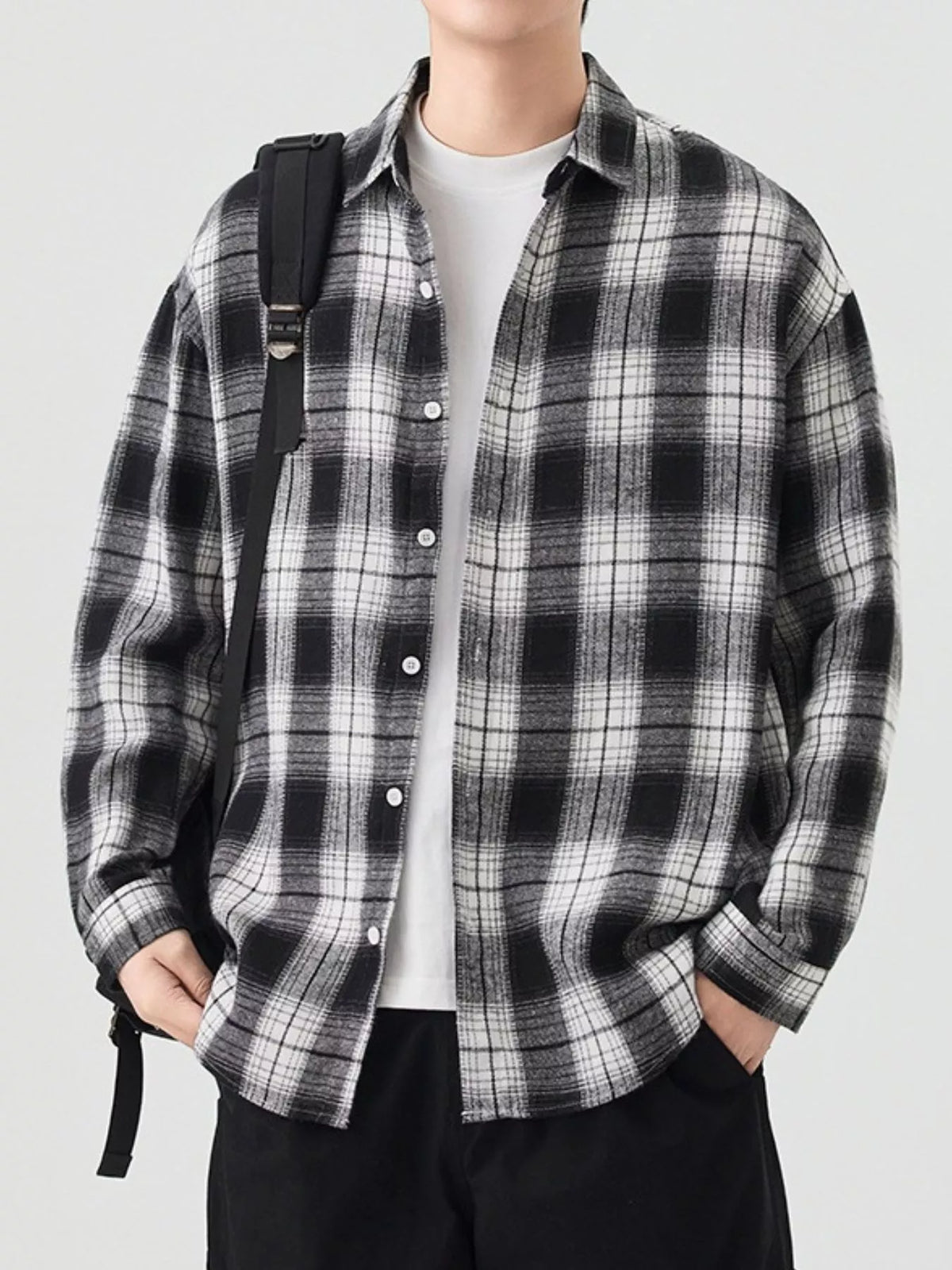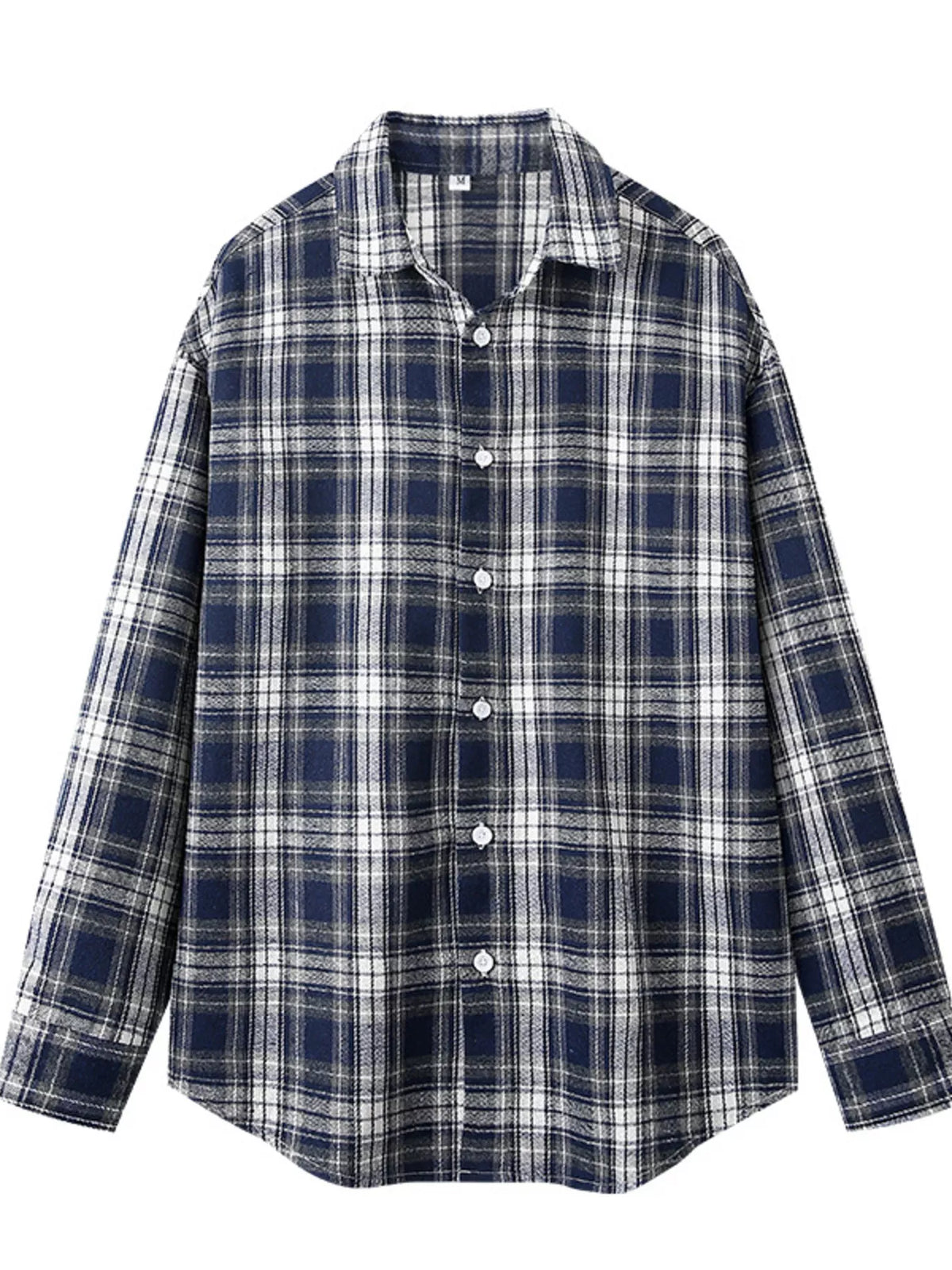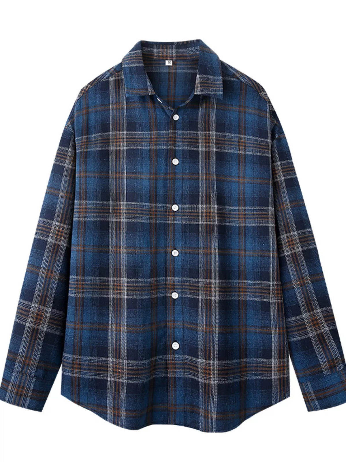 Men's Plus Size Casual Plaid Button Up Shirt - Navy Blue / M