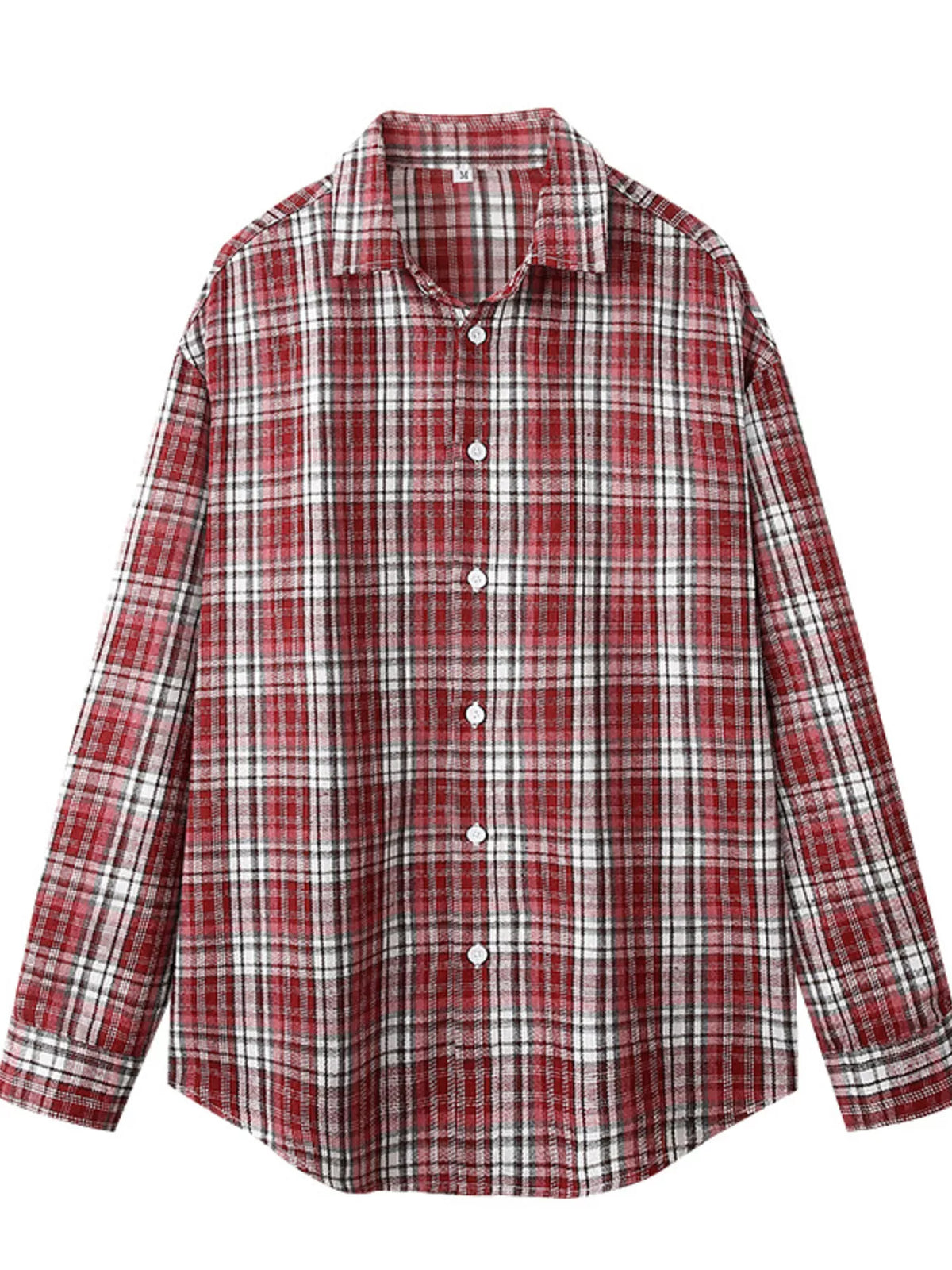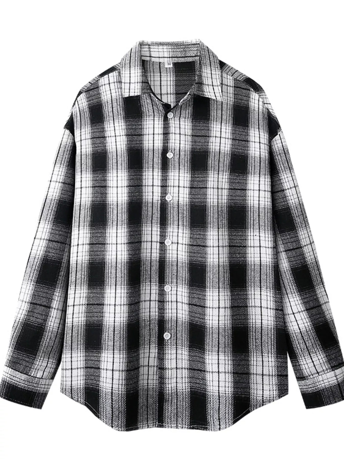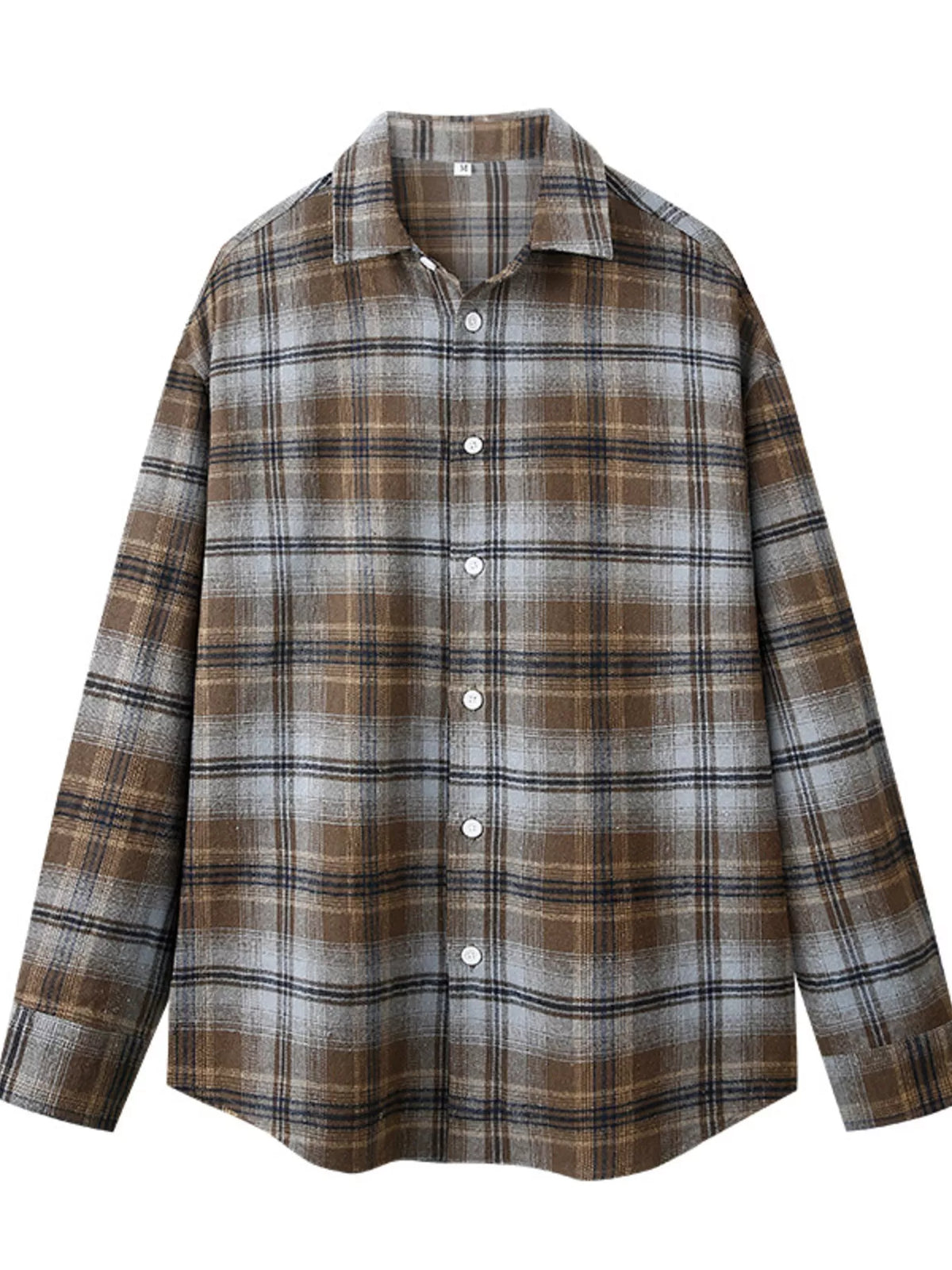 Men's Plus Size Casual Plaid Button Up Shirt - Navy Blue / M